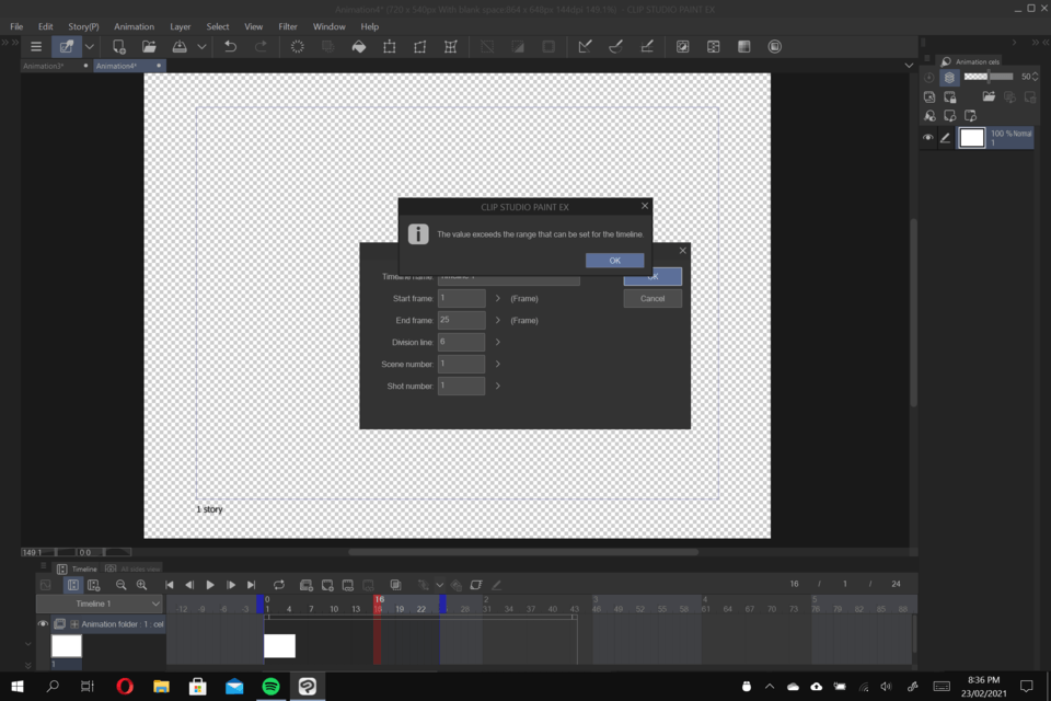clip studio paint animation frame limit
